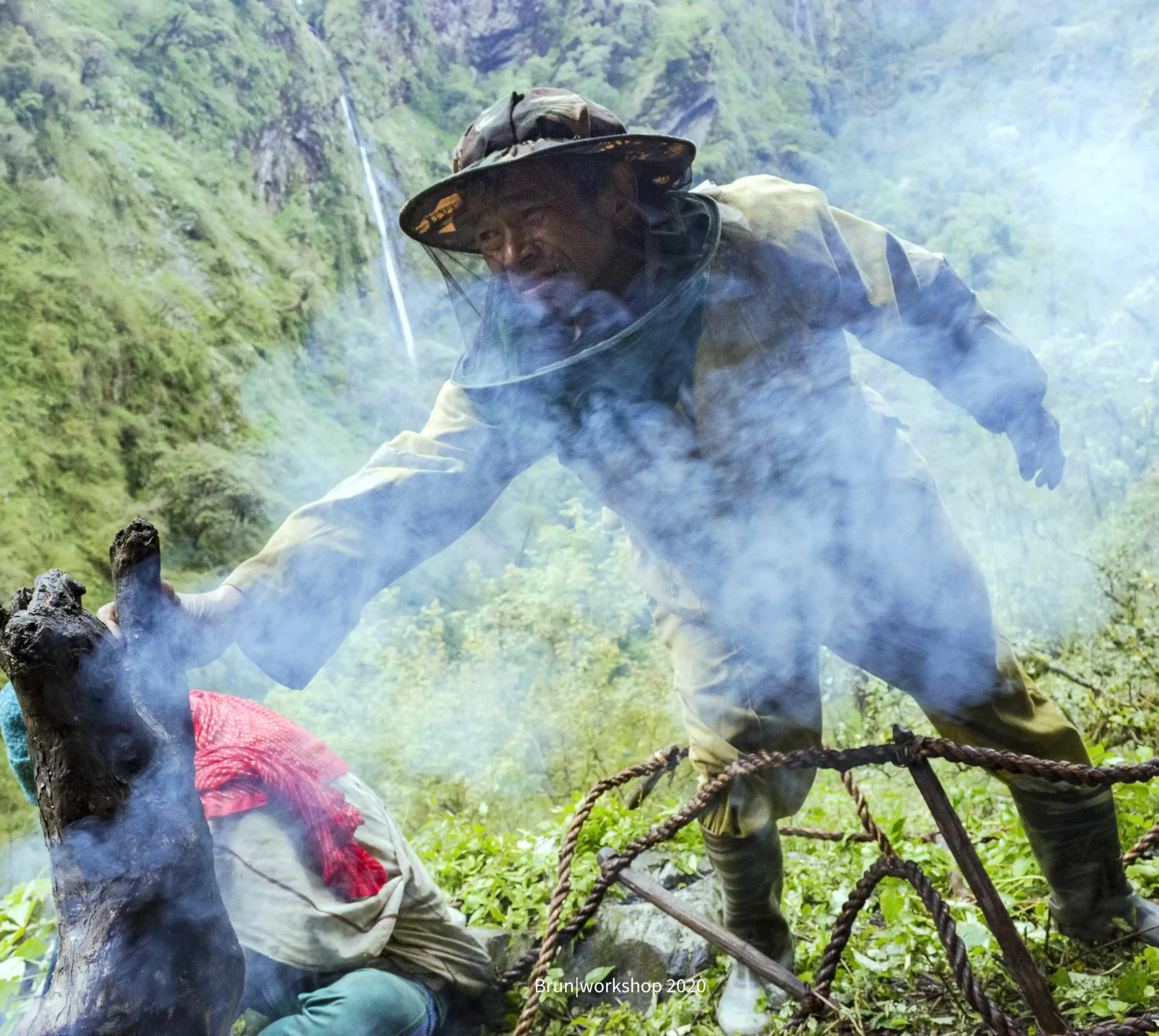 We pay our hunters significantly above market rate — because dangling off a cliff hundreds of meters high deserves more than commodity pricing. We operate with 100 percent direct trade — no middlemen taking a cut. We harvest only what the mountain gives and we never over-harvest. When a colony needs to be left alone, we leave it alone — even if that means less honey to sell.